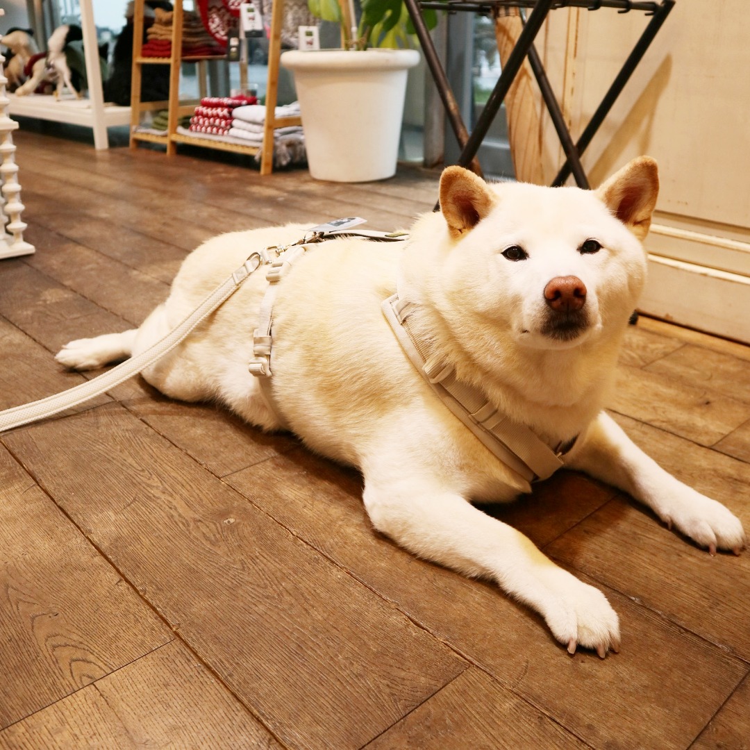 本日は店舗限定販売中の新作ハーネス&リード【マルドンアップ/グレージュ M~Lサイズ】【マルドンアップ/グレージュ 20/200㎝】をお選びいただきました!