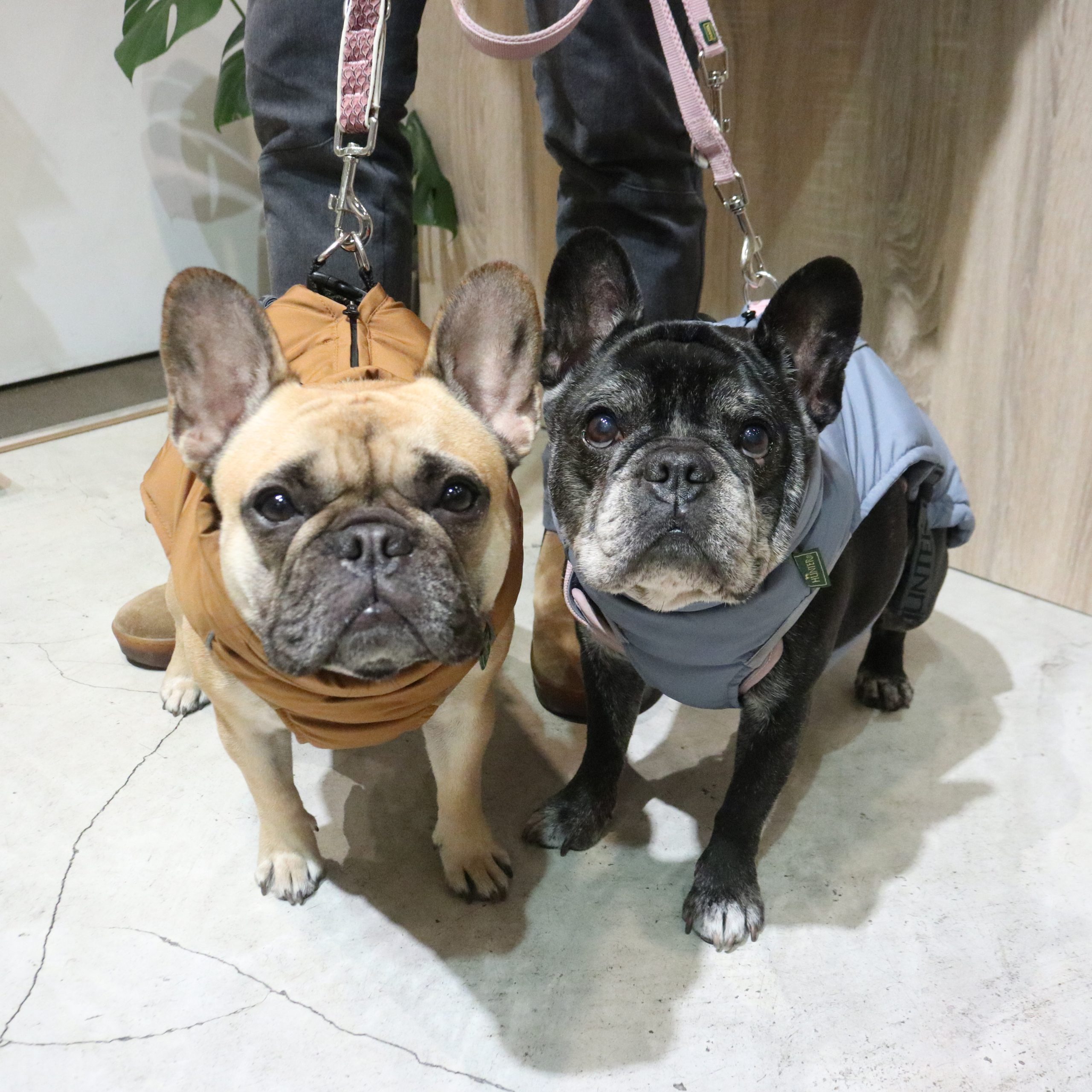 ブルーのコートがニコちゃんの艶々な黒いコートにアクセントとなり、