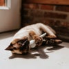 各ボムズ猫用おもちゃは一点もの。30℃の水で洗濯ネットに入れて一緒に洗うことができ、洗った後は手で転がして形を整え、暖房の上や日なたで乾かしてください。