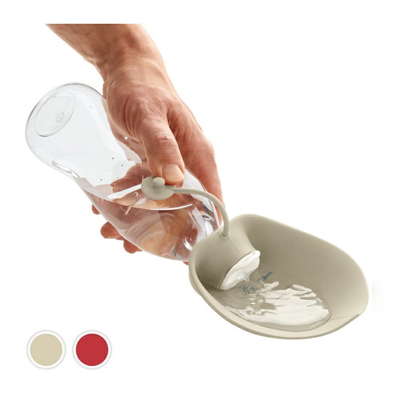 羅針盤が描かれたシックなデザインの【リスト】シリーズの給水ボトル。 水入れ用のボウルが一体になった給水ボトルなので、これ1つで場所を選ばず給水頂けます。 カラピナ付きでベルトやカバンに装着して持ち運べます。