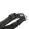 バックルやコキ(長さ調節具)は、軽量で頑丈なプラスチックでできており、リードを付けるためのDリングはしっかりと縫い付けてあります。
