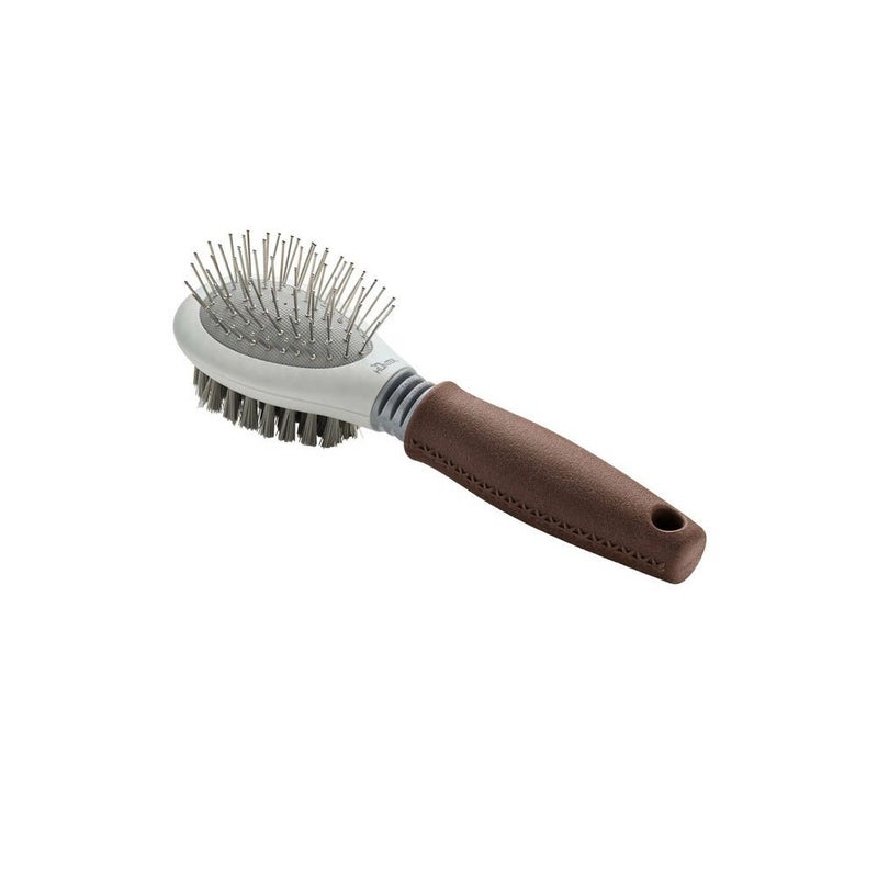 ハンター スパ/SPA シリーズ 「スパ」シリーズはブラシやコーム、爪切りなど愛犬愛猫のお手入れに欠かせないケア用品のシリーズ。 表裏でブラッシングとグルーミングの使い分けができるコンビブラシ。 被毛を解きほぐすピンブラシと、被毛のオイルを行き渡らせる密毛なブラシがついた万能ブラシです。 短毛種から長毛種まで毛質を選ばずお使いいただけます。 小型犬-中型犬におすすめのサイズです。 人間工学に基づいた形状のハンドルにより、より快適で安全な取り扱いが可能です。