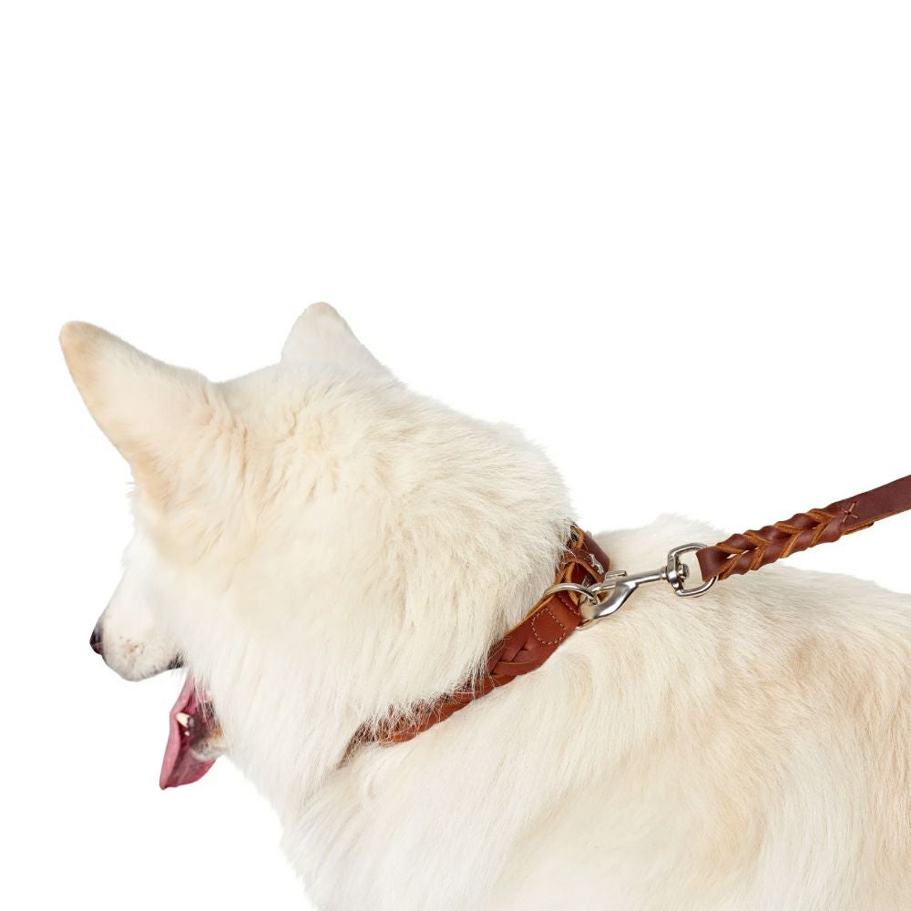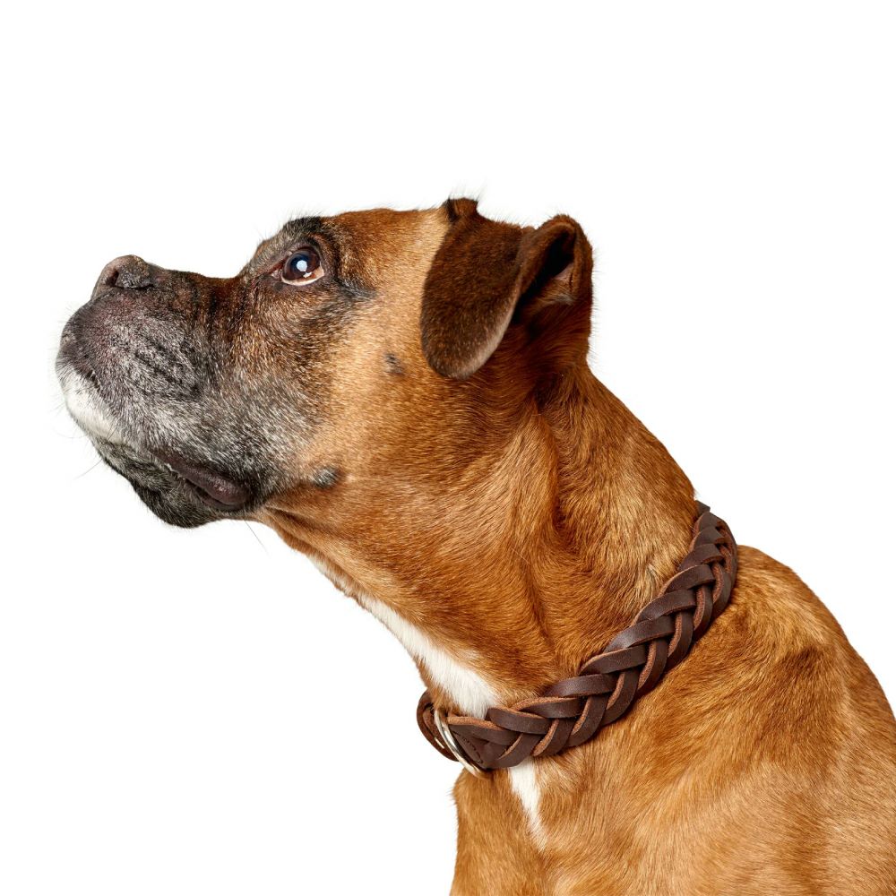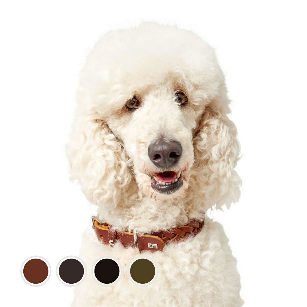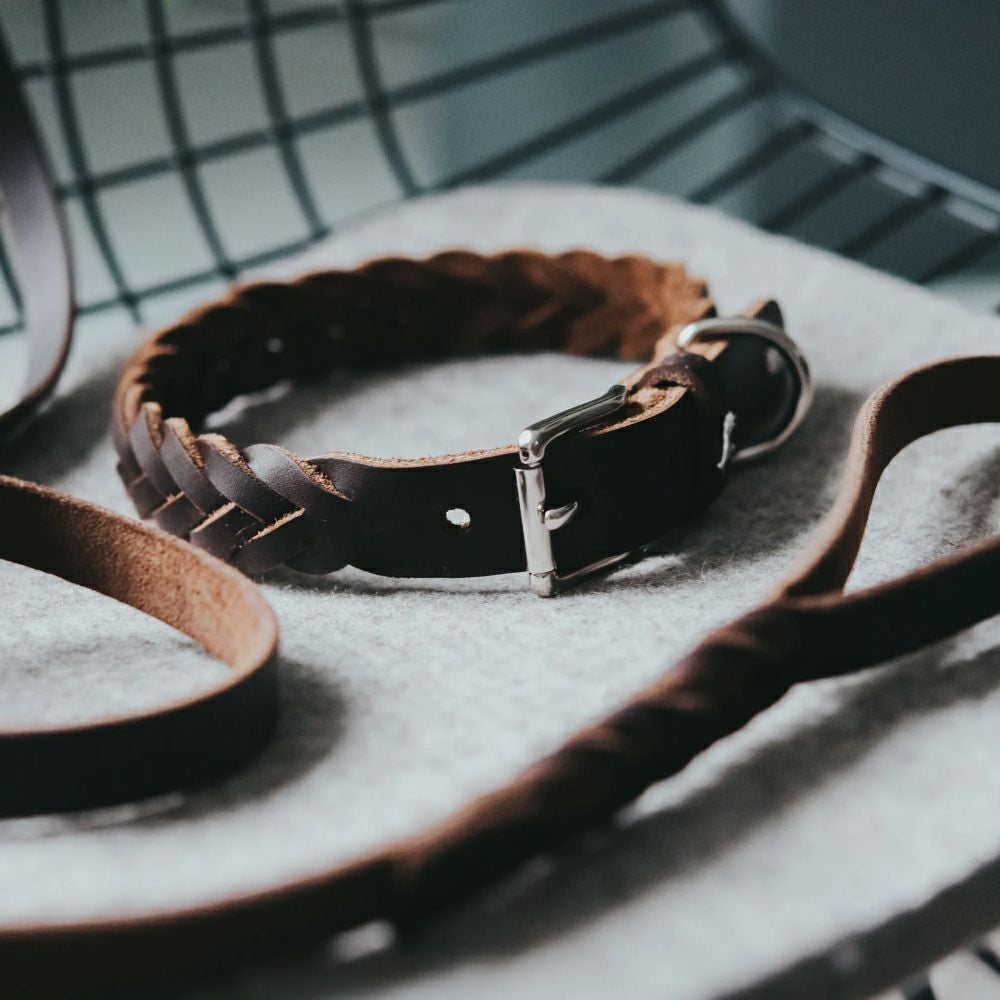 芸術的な手編みを施したオイルレザーの首輪