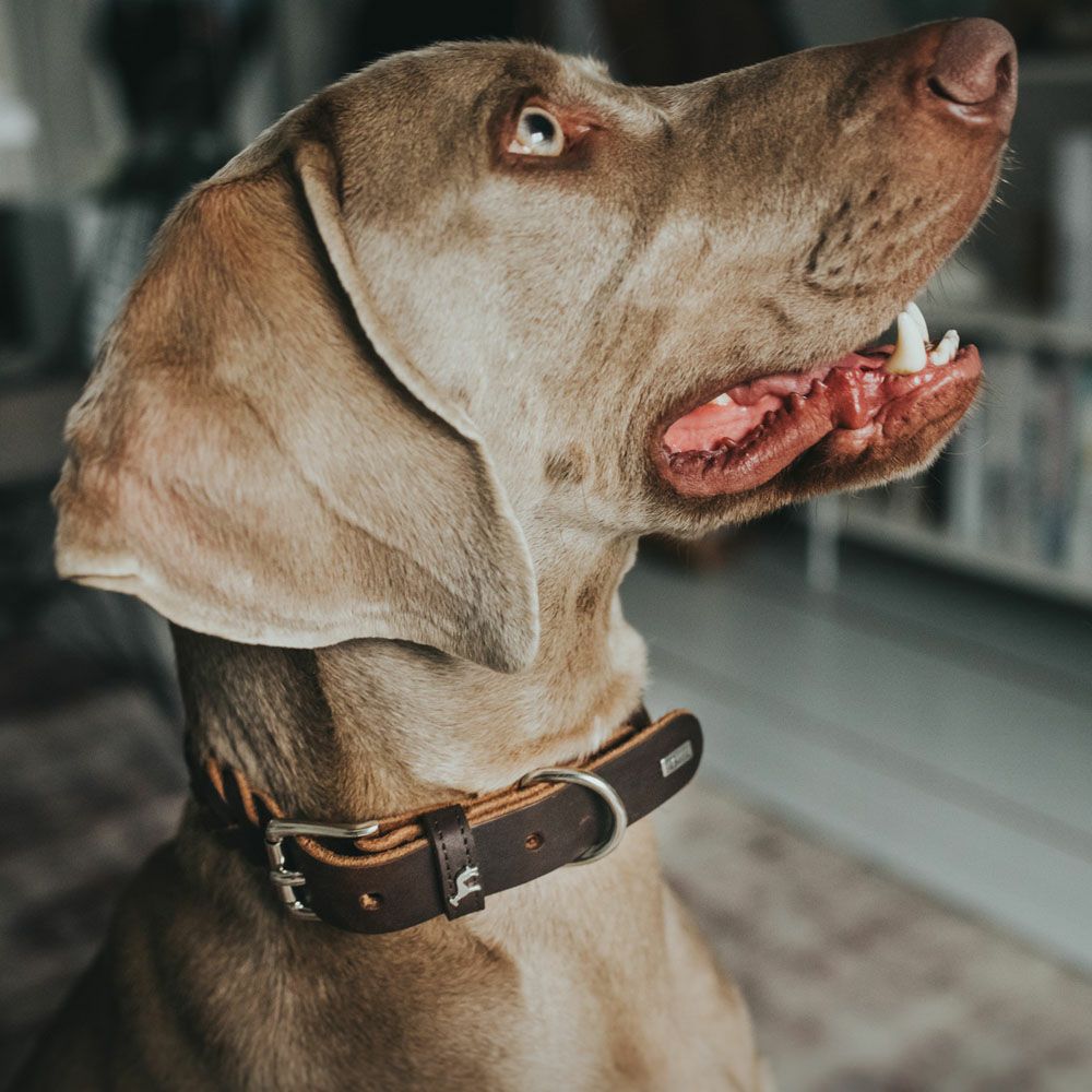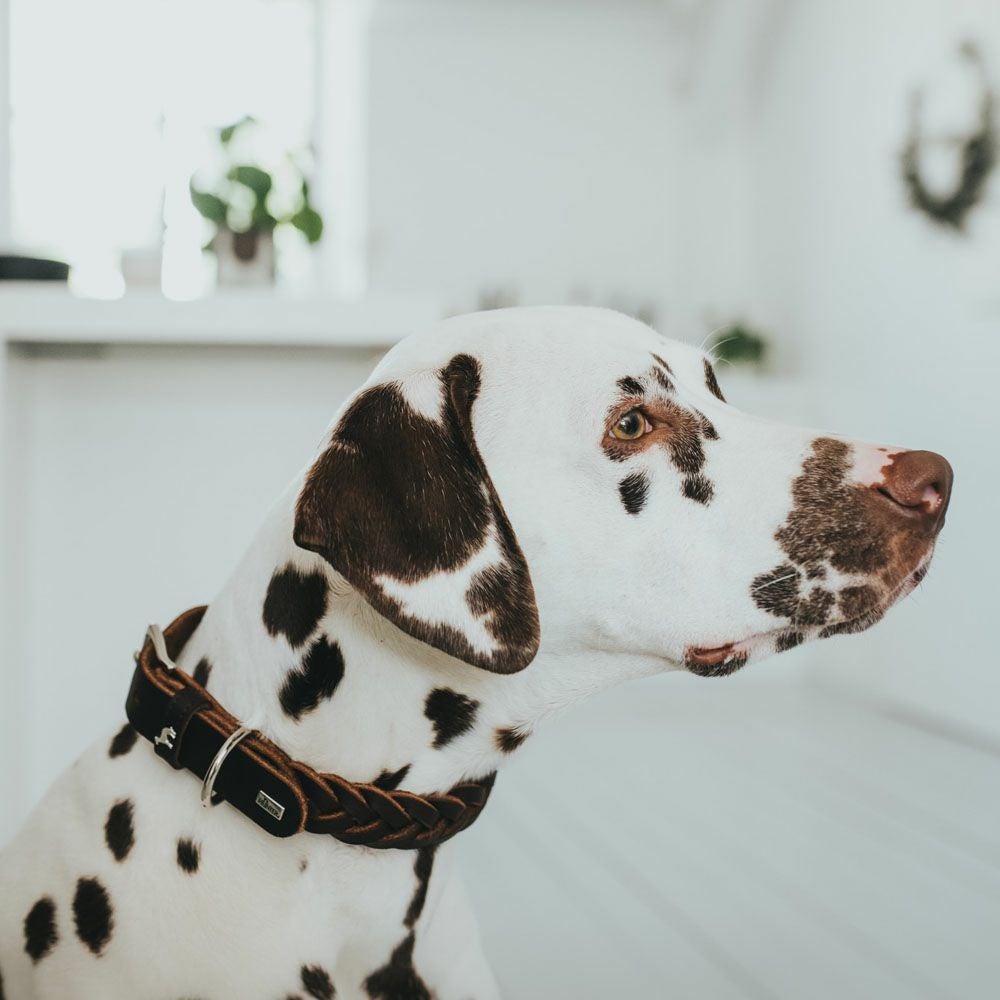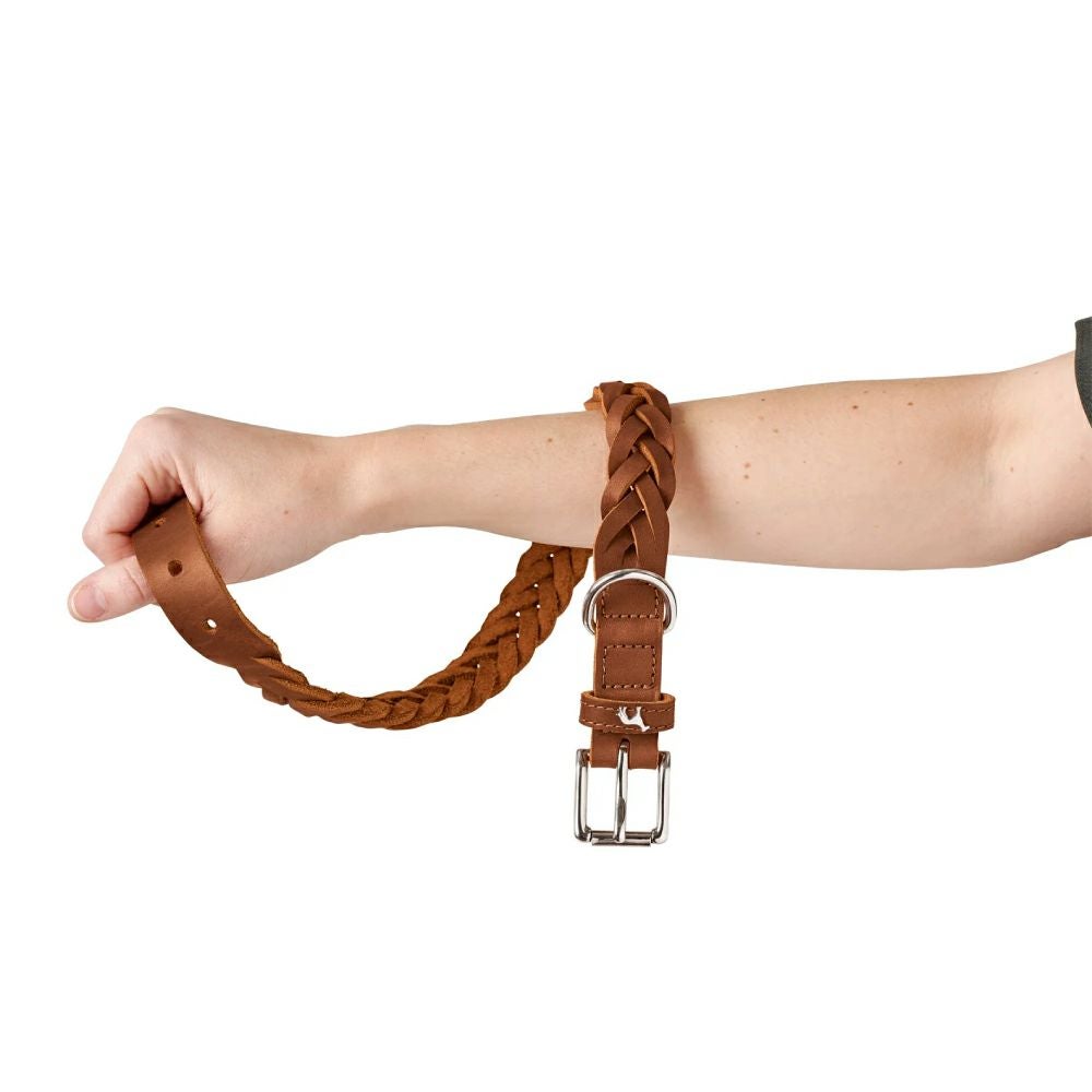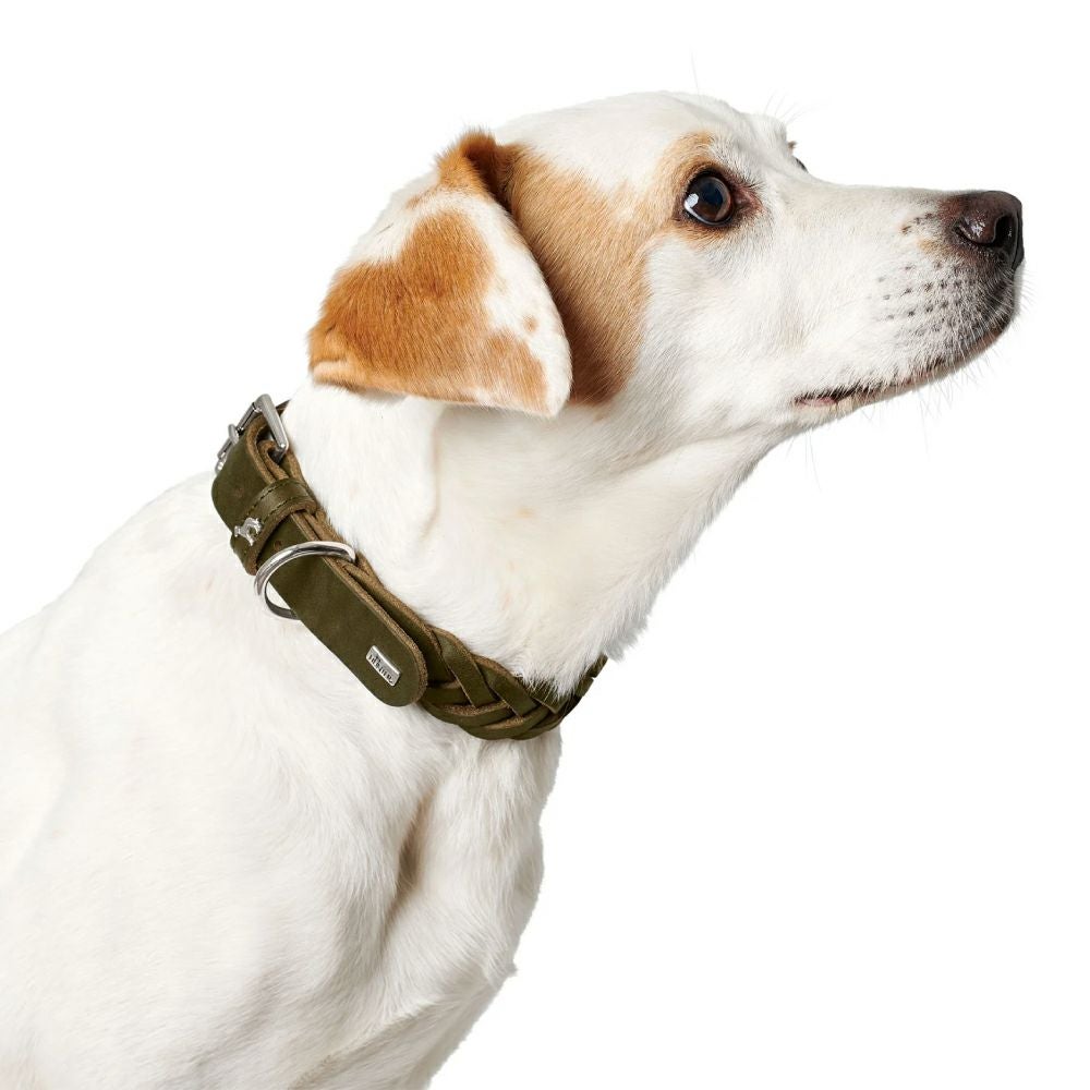 芸術的な手編みを施したオイルレザーの首輪